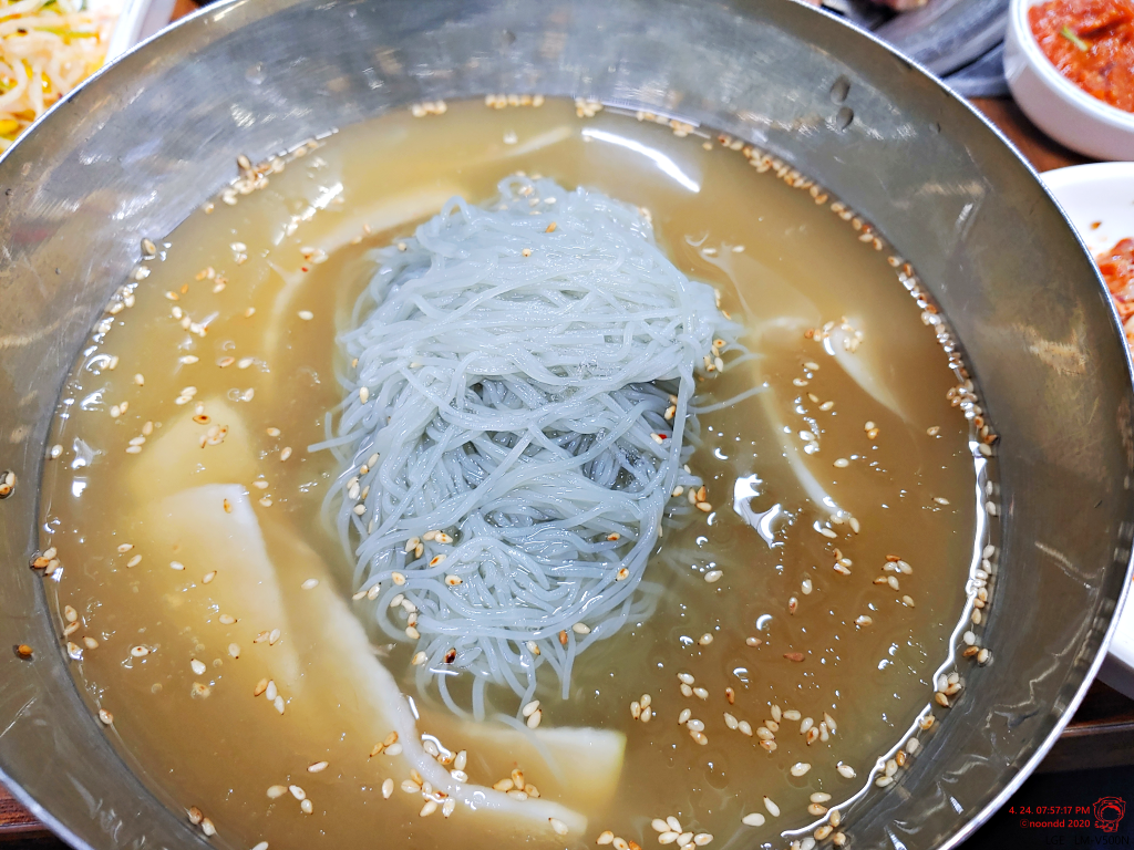 이게 후식 냉면. 늦게 주셔서 까먹고 있었는데, 늦어서 미안하다 하시며 곱빼기 같아 보이는 냉면을 하나씩 내어 주셨다. 진심 합쳐서 나누면 세 그릇일 것 같았다.