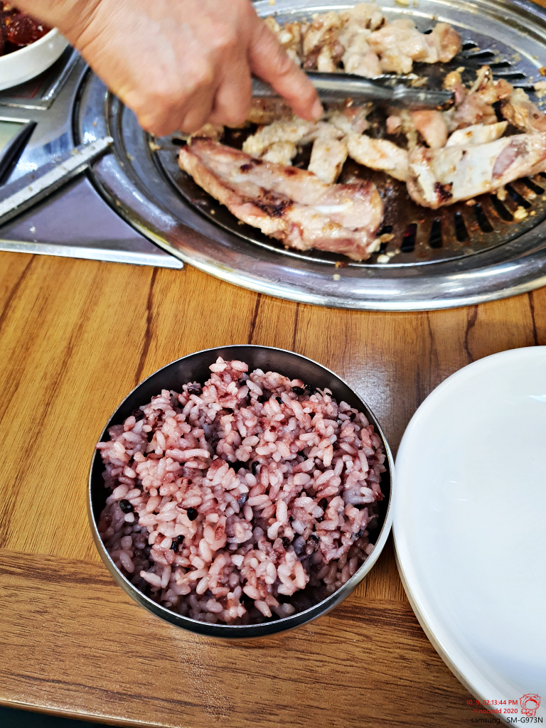 난 "고기는 밥이랑 먹어야 더 맛있다."는 신념을 가지고 있어 밥을 시켰는데... 흑미 밥이라니?! ㅠ.ㅠ 흰쌀밥 주세요. 흰쌀밥에 고기반찬이 국룰이지.