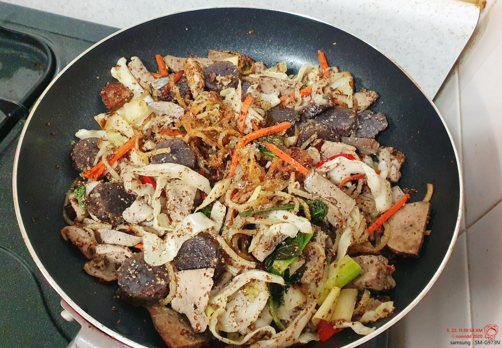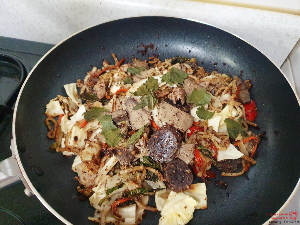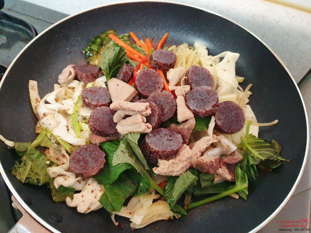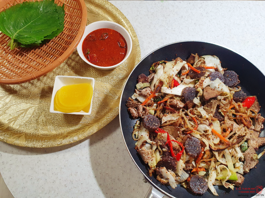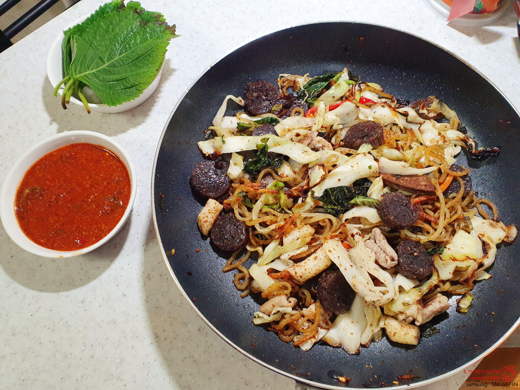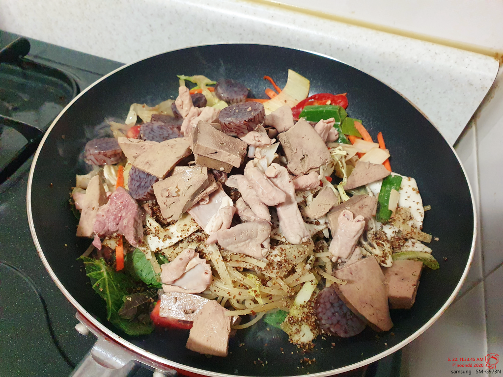 순대랑 부속물도 함께 넣어 볶볶. 혼자 먹어야 하니 적당량.