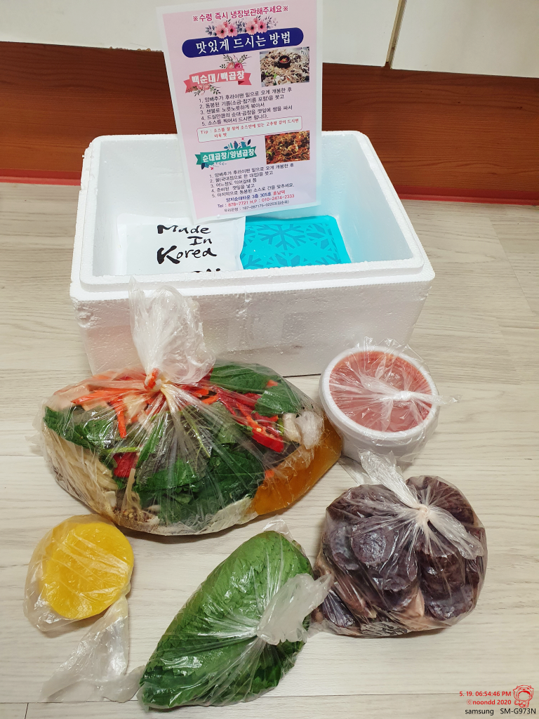 그 정체는 동선이 맞지 않아 좀처럼 먹을 수 없던 신림동 백순대. 신림동 빼곤 순대타운 하면 보통 빨간 양념의 순대볶음을 하는 경우가 많아서 종종 생각났는데, 이거 하나 먹자고 신림동까지 갈 정도는 아니라 계속 미뤄지기만 했더랬다. 결국 이렇게 집에서 받아보게 되는구나.