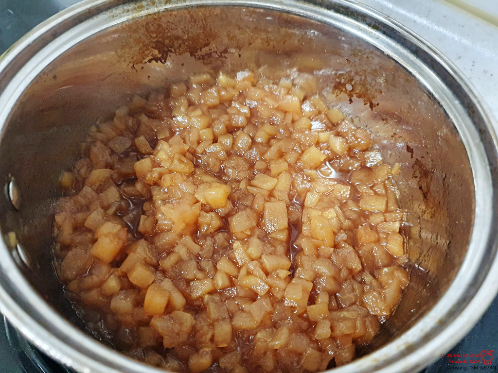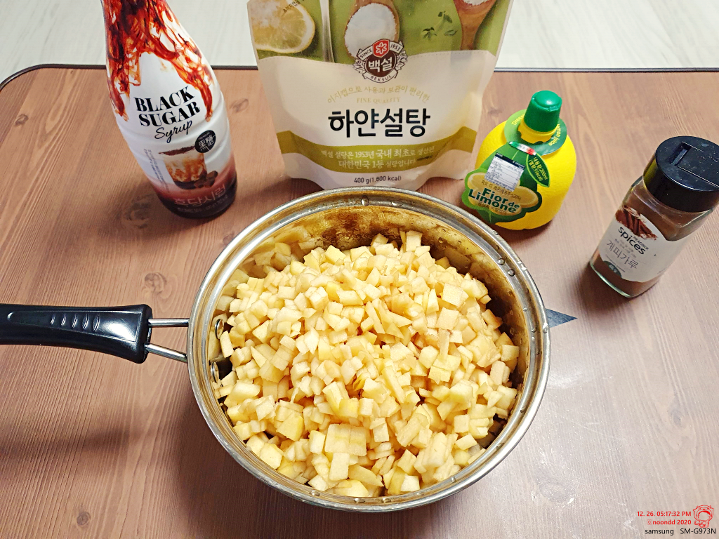 약불에 하고, 사과에서 물이 나와서 그런지 그닥 저어주거나 해야 하는 건 없었다.