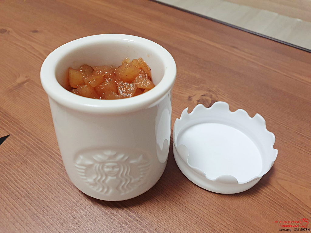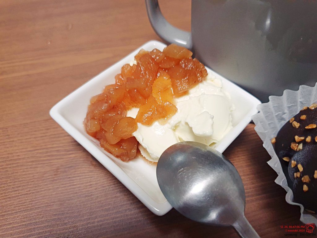간식에 곁들여 본 사과조림.