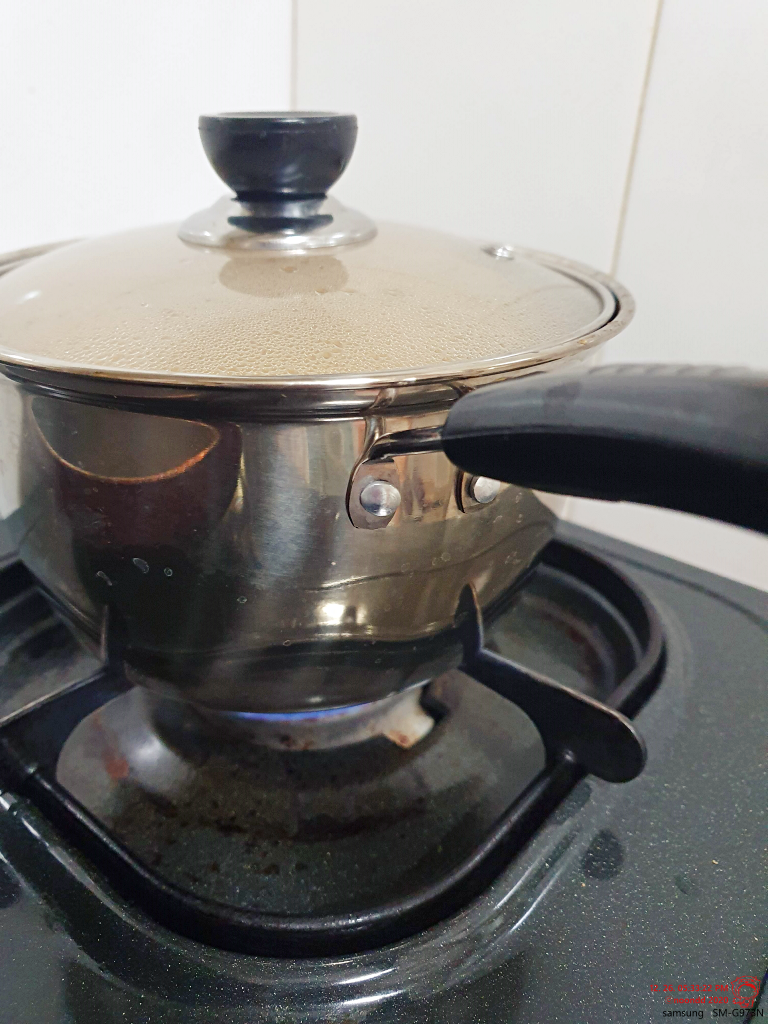 뚜껑 닫고 약불 위에 방치.