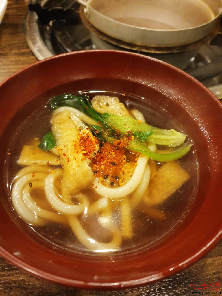 추가로 더 주문하지 않았다면 상 위의 고기와 채소 소쿠리를 비운 뒤 우동으로 마무리하게 된다.. 샤브샤브를 단계를 마친 뒤에 찾아오는 냄비우동 타임.