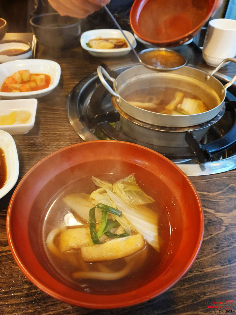 우동 양이 많진 않다. 이미 본식을 마치고 서비스로 따라오는 개념이라 그러려나? 처음 갔을 땐 추가 주문을 하지 않아서 우동 양이 적다 싶었는데, 이제 1,5인분을 해치운 뒤라 딱 적당하다.