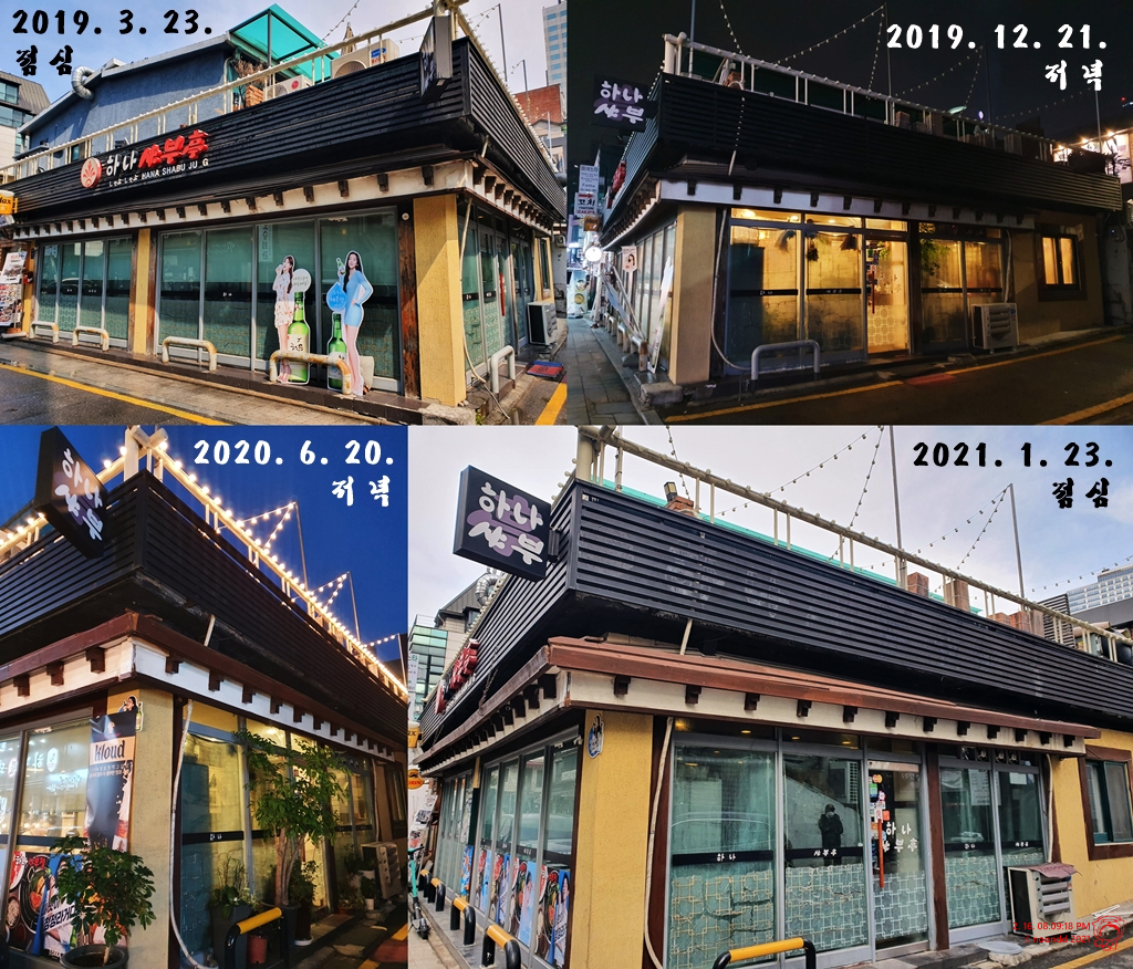 하나샤부정을 알게 되고 총 네 번의 방문을 했고, 항상 돼지 2인분으로 시작했다. 사진을 모아보니 두 번째 방문 때 고기가 유독 달라 보인다. 그 날은 손님이 많아서 신발 벗고 들어가는 방 자리에 앉았었고, 고기는 다른 날에 비해 기름기가 적고 다소 녹아 있는 상태였다. 그날은 소주를 곁들였고, 처음이자 마지막으로 소고기를 주문해봤고, 가장 많은 액수를 결제하고 나왔다.