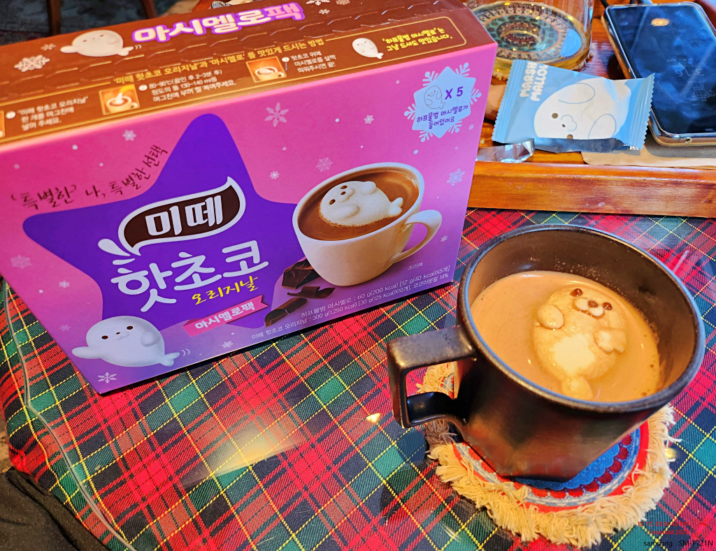 미떼 핫초코 오리지날 마시멜로팩. 미떼는 익히 알지만 하프물범 마시멜로가 들어있는 버전이 있단 건 처음 알았다. 작년엔 나무늘보를 올려줬었다고. 그게 반응이 좋았는지 올해도 야심 차게 신작이 등장했고, 이번엔 물범이란다.