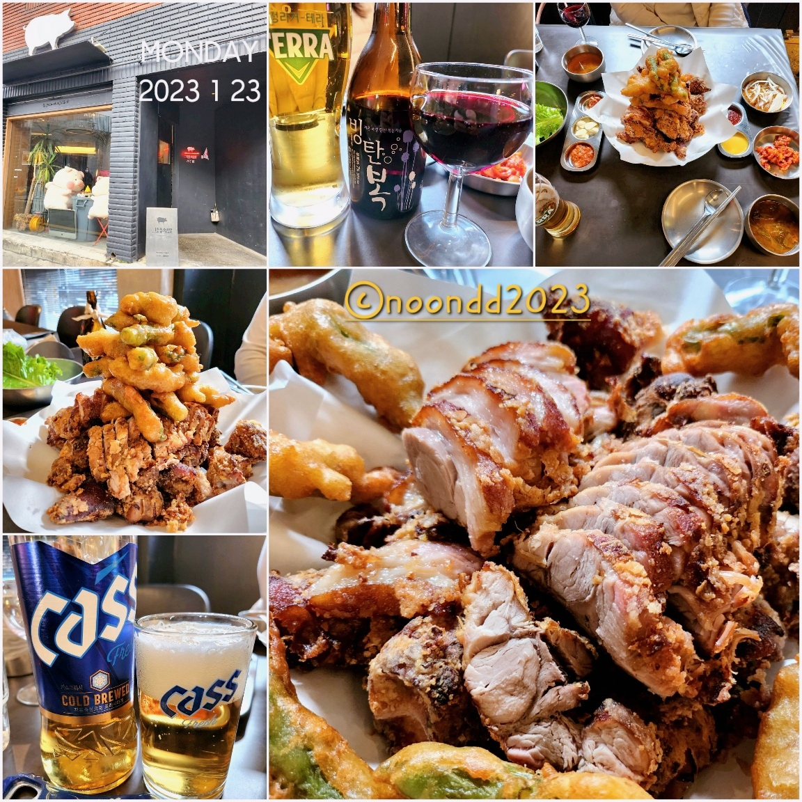 유명한 식당들은 명절 연휴를 다 쉬는 경우도 많고, 그게 아니더라도 원래 월요일이 정기휴일인 경우도 많아서 뭘 먹을까 고민하다 마침 그믐족발 성수점이 영업을 한다기에 한번 먹어보자 했던 튀김족발을 먹어보기로 했다. 산처럼 쌓아서 내어오는 메뉴 비주얼이 탄성을 자아냈다. 국내산 족발이라더니 확실히 잡내가 나지 않아 좋았다. 바삭한 게 딱 치킨의 족발 버전. 치킨처럼 집에서 쉽게 배달시켜 먹을 수 있다면 좋을 것 같다.