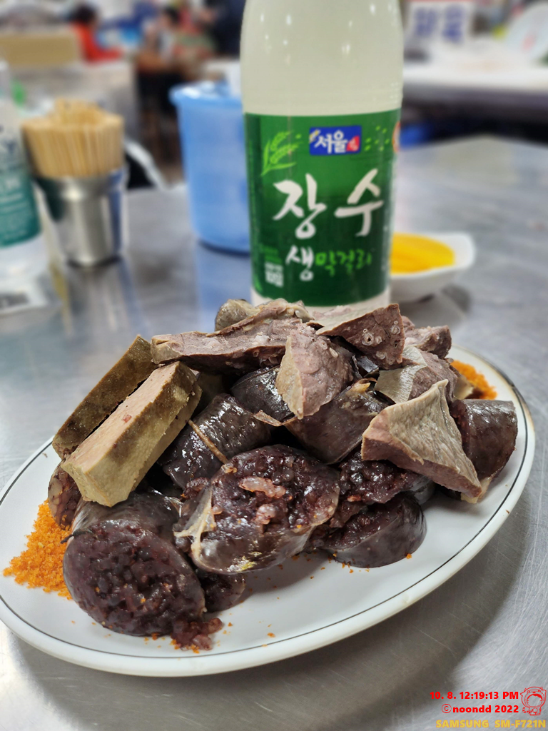 쑹덩쑹덩 투박하게 썰려 나온 순대 한 접시. 간이랑 허파 등 부속물도 알차게 담겨 나왔다. 무난하게 괜찮았다.