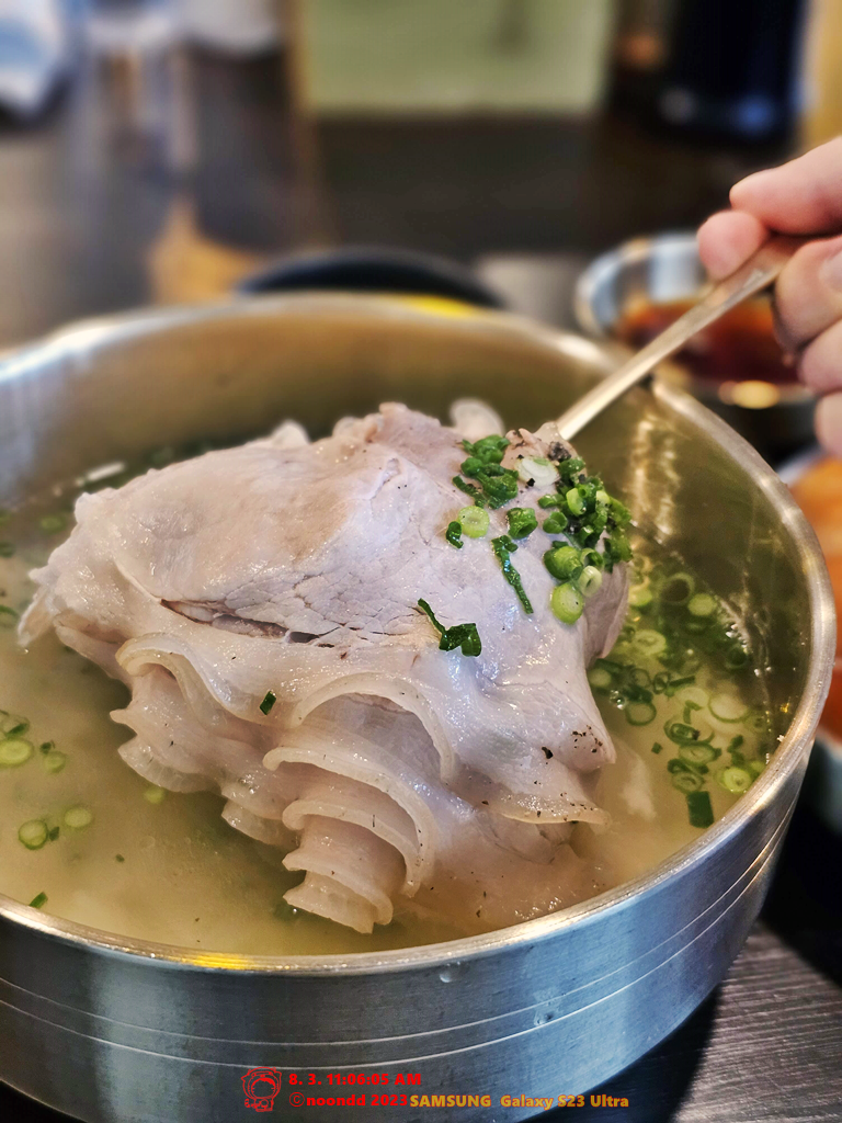 특사이즈는 일반에 비해 고기가 도톰했다. 개인적으로는 일반에 든 팔랑거리는 고기가 국밥과 더 잘 어울리는 것 같다.