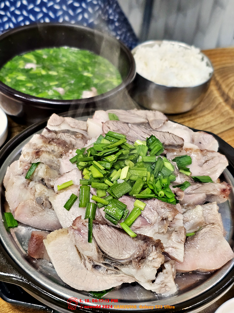 밑반찬이랑 양념 제외하고 수육정식의 구성은 국이랑 밥이랑 수육.