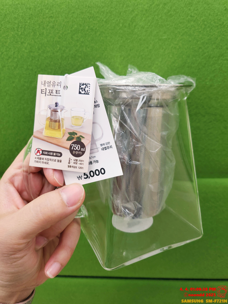 찻잎으로 차를 내려 마시는 경우가 더러 있는데, 제대로 된 도구가 없어서 그냥 머그컵에 인퓨저나 거름망, 다시백 등을 이용해서 먹고는 했다. 간혹 클레버를 이용하기도 ㅋ 어쨌든, 보통 잎으로 차를 우릴 때면 뜨거운 물을 더해서 몇 번 더 마시기 마련인데, 확실히 티포트가 있으면 편하겠다 싶었고, 마침 다이소에 들른 김에 하나 질렀다.